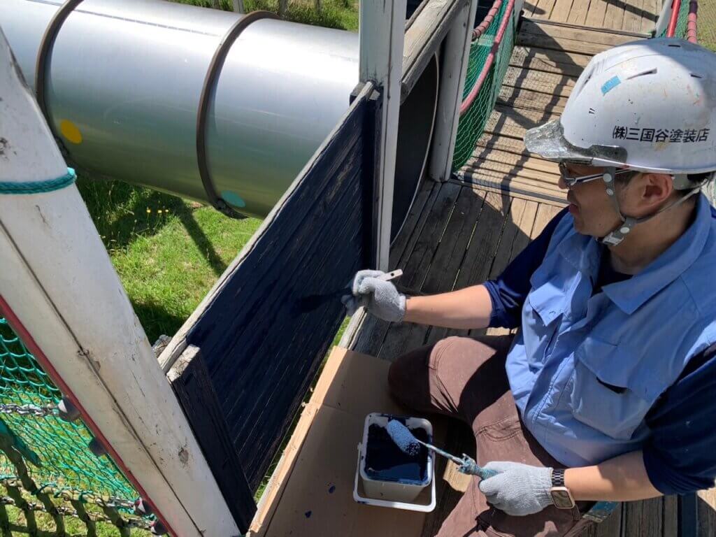 安全確認を徹底しながら、一つひとつの部材をきれいに仕上げていく作業は、まさに職人技の集まり。色鮮やかになった遊具は、まるで新しく生まれ変わったかのようです。